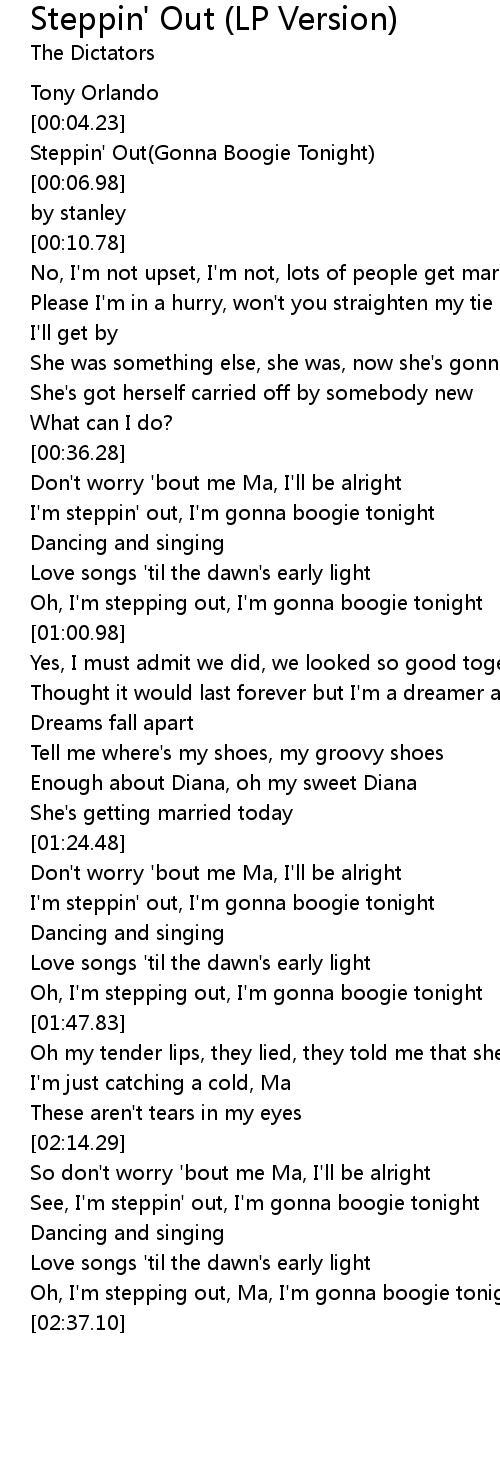 [02:19.89] See, I'm steppin' out, I'm gonna boogie tonight