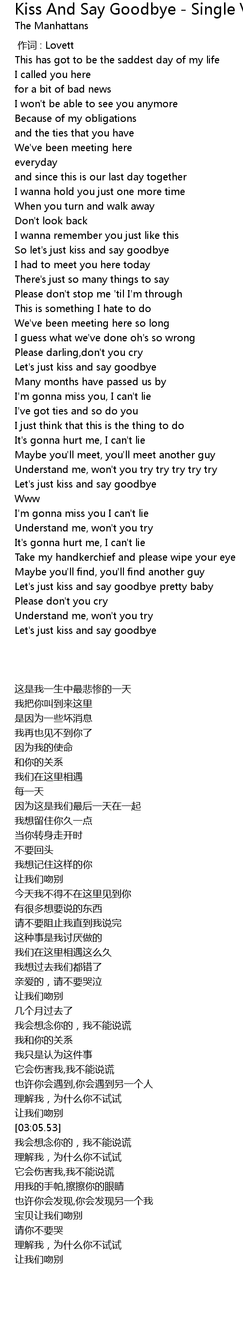 | [04:11.28] | Let' s just kiss and say goodbye |
