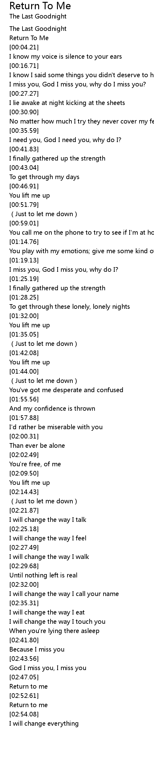| [02:51.67] | Return to me |