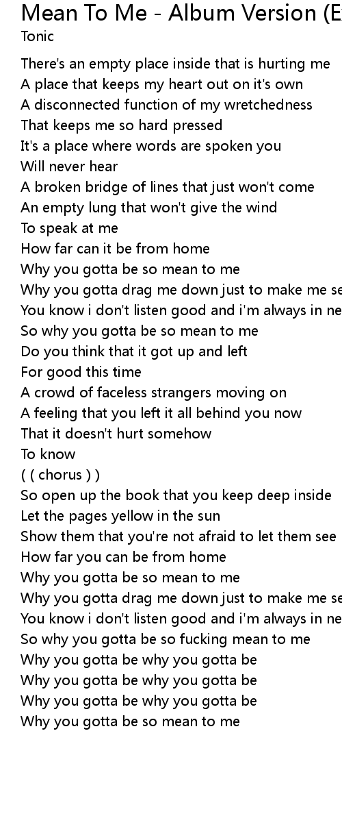 | Why you gotta be so mean to me | |