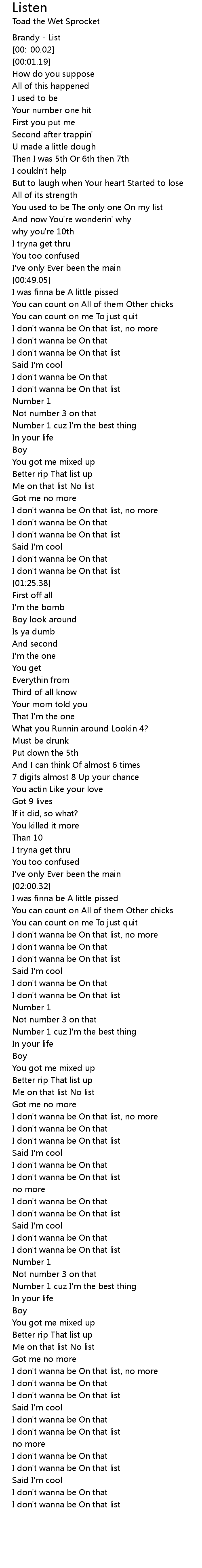 I don't wanna be On that list |