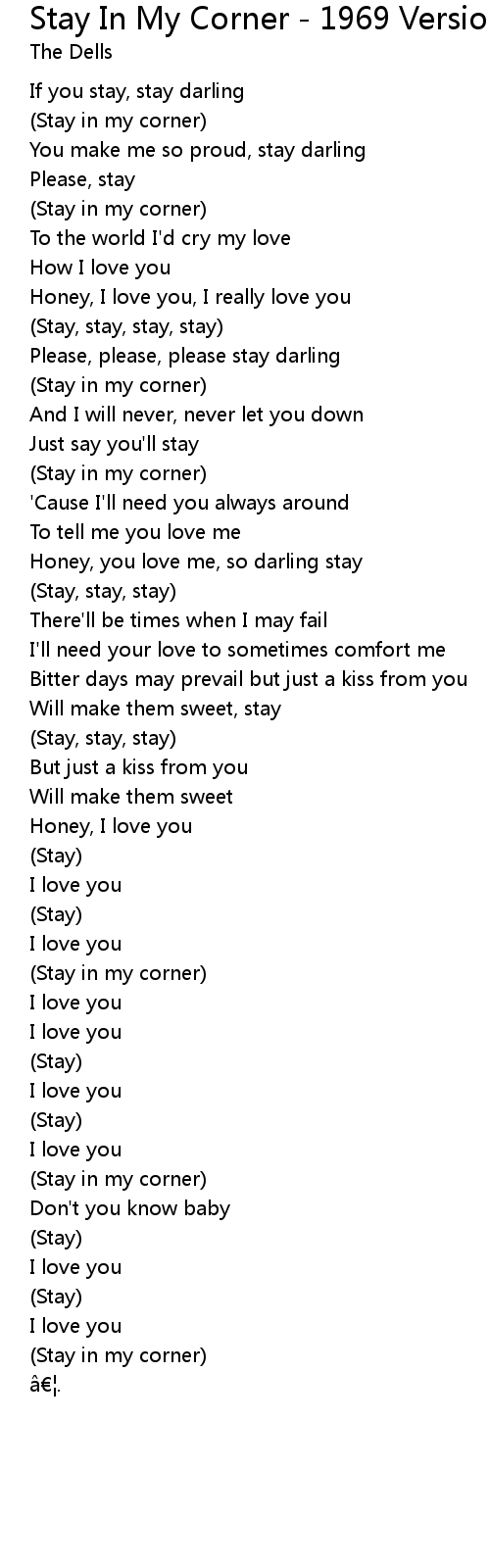 | 歌曲 | Stay In My Corner - 1969 Version |