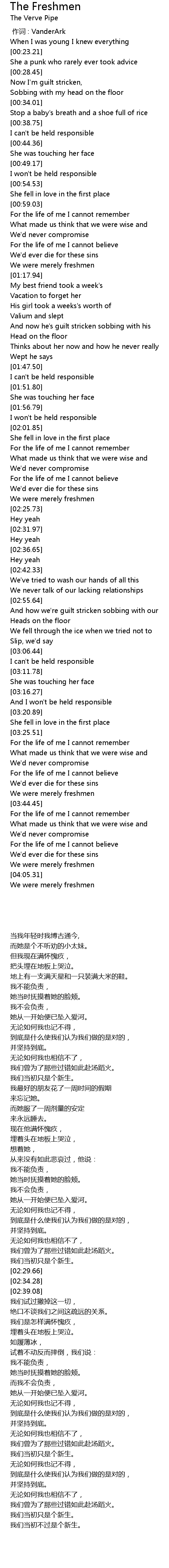| [04:01.16] | We were merely freshmen |