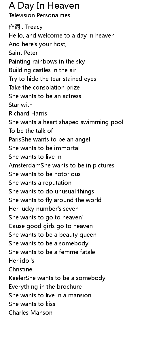 | 歌曲 | A Day In Heaven |