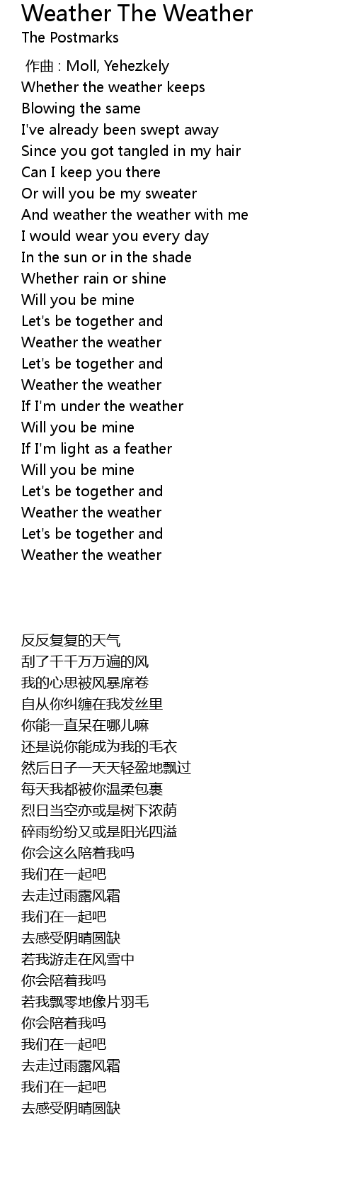 | [01:35.66] | Weather the weather |