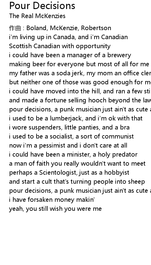 | 歌曲 | Pour Decisions |
