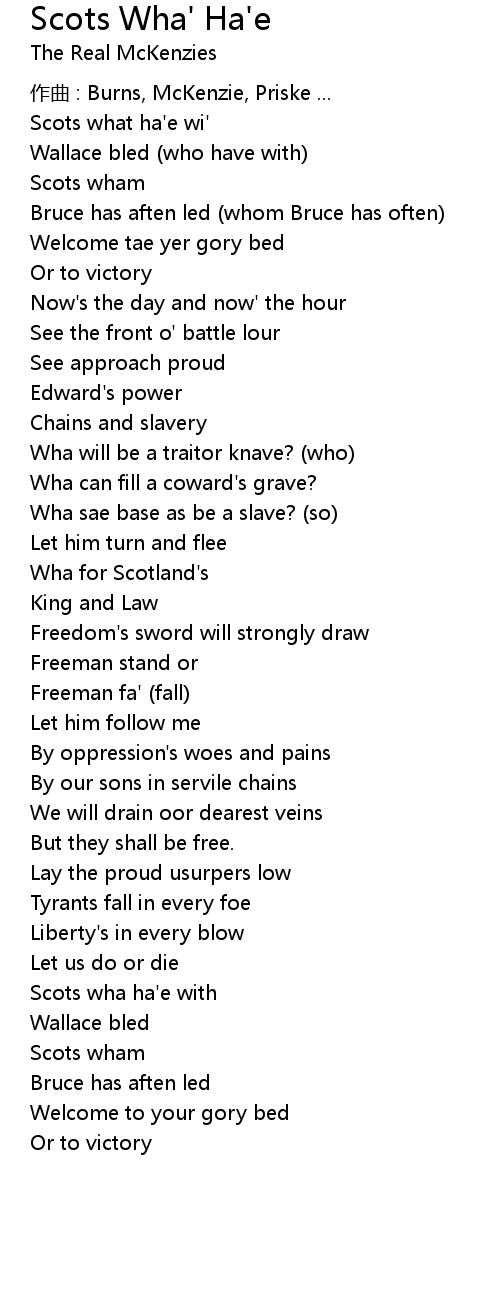 | 歌曲 | Scots Wha' Ha'e |