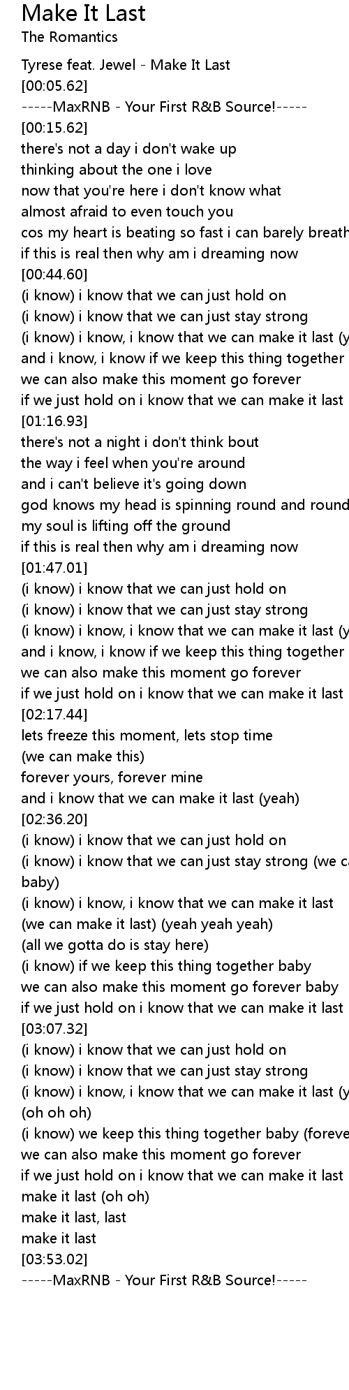 Tyrese feat. Jewel - Make It Last |