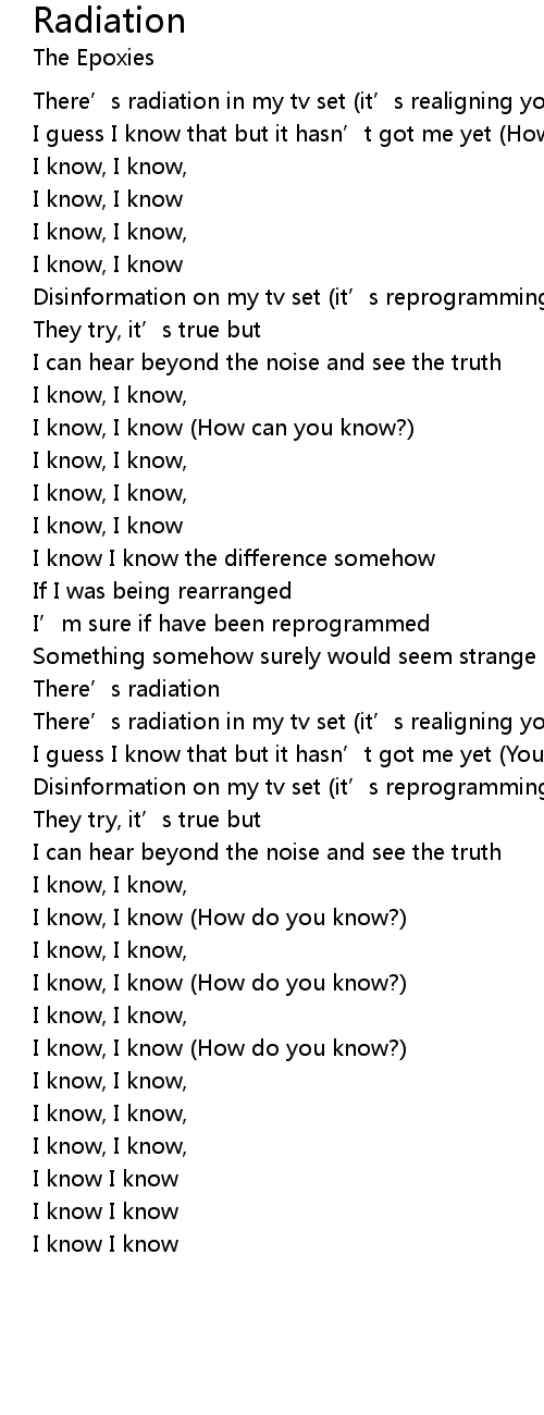 | There’s radiation in my tv set (it’s realigning you) | |