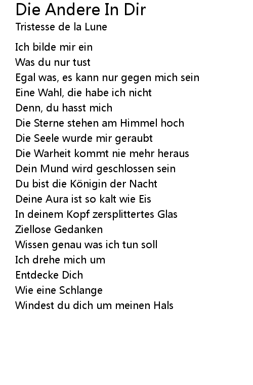 | 歌曲 | Die Andere In Dir |
