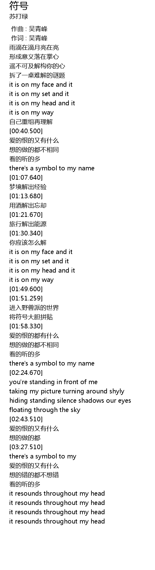 | [00:00.00] | zuò qǔ : wú qīng fēng |