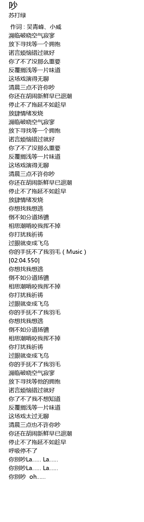 | [00:41.400] | qīng chén sān diǎn bù xǔ nǐ chǎo |