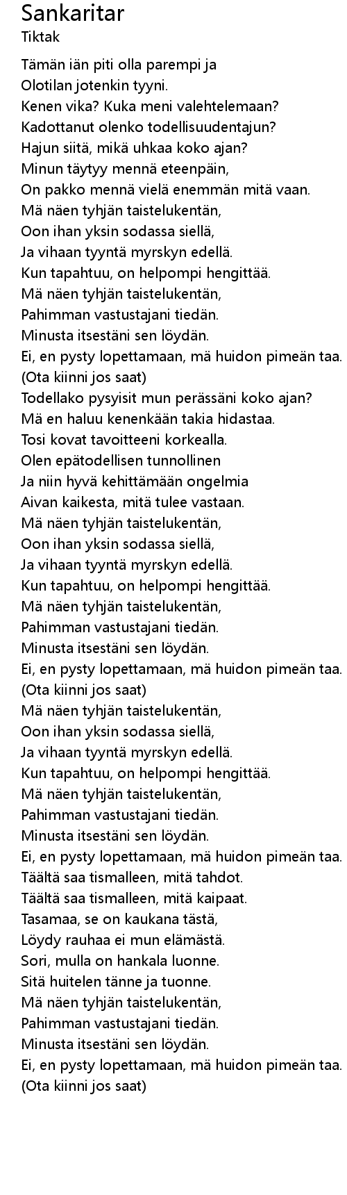 | 歌曲 | Sankaritar |