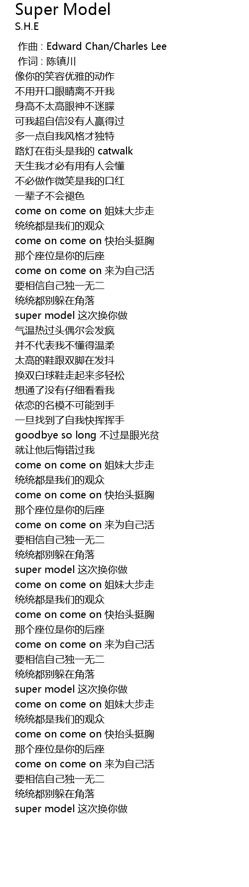 | [03:07.458] | super model zhè cì huàn nǐ zuò |