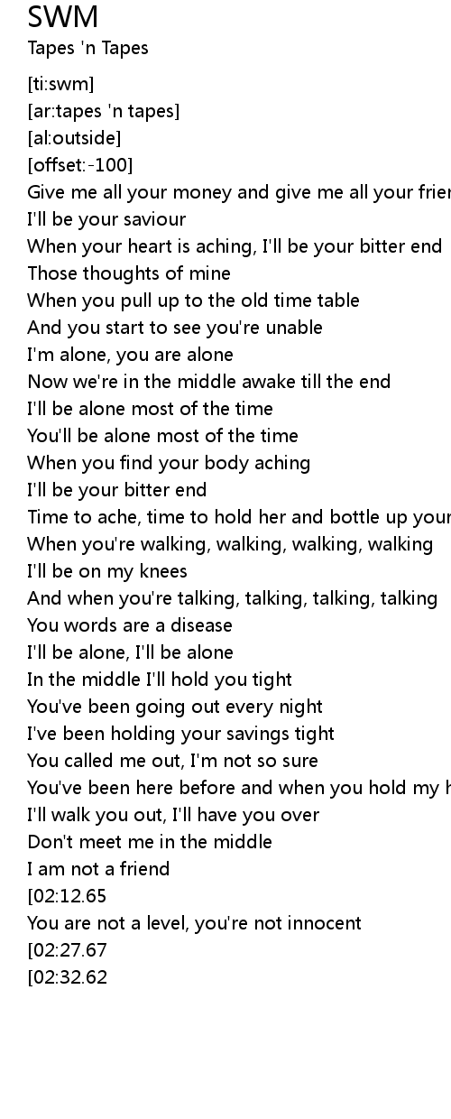 [02:02.97][02:12.65] You called me up you called me out and so sure, so sure