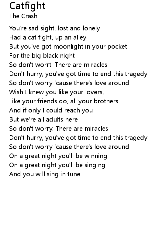 | Had a cat fight, up an alley | |