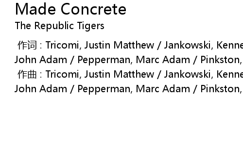 | [00:00.000] | zuò cí : Tricomi, Justin Matthew Jankowski, Kenneth Earl McGill, John Adam Pepperman, Marc Adam Pinkston, Ryan David |