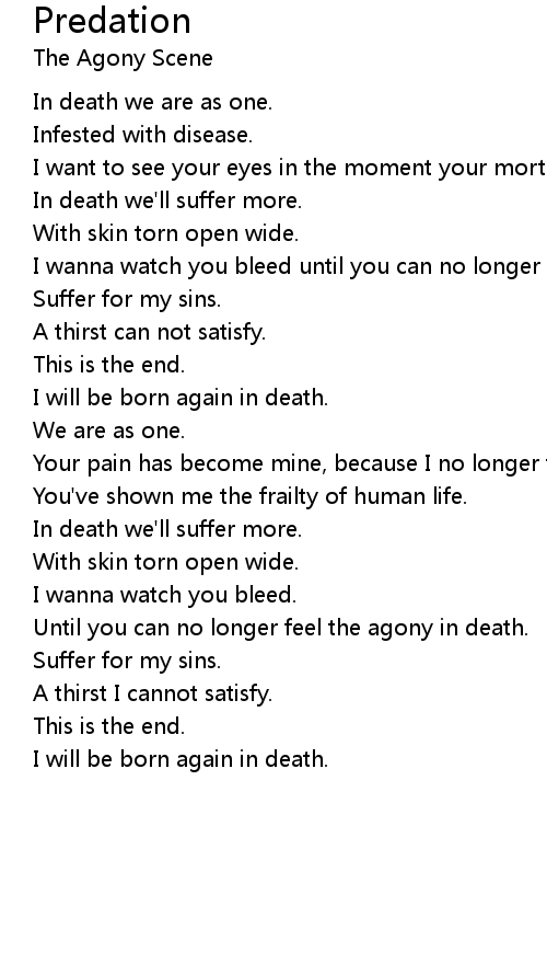 I wanna watch you bleed until you can no longer feel the agony in death.