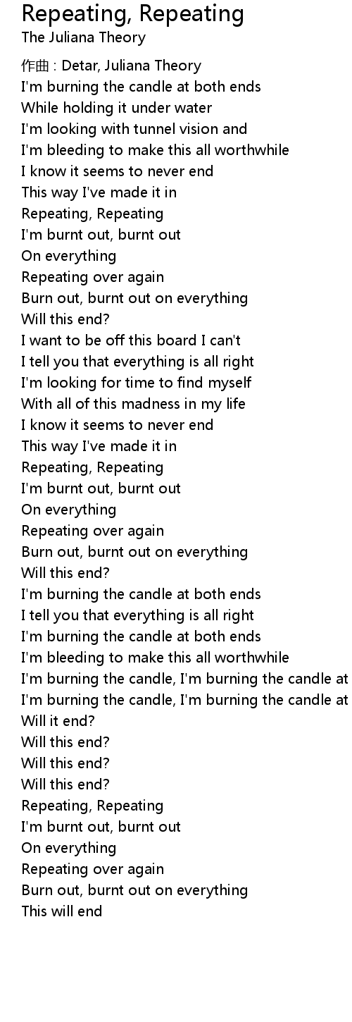 | I' m burning the candle, I' m burning the candle at both ends | |