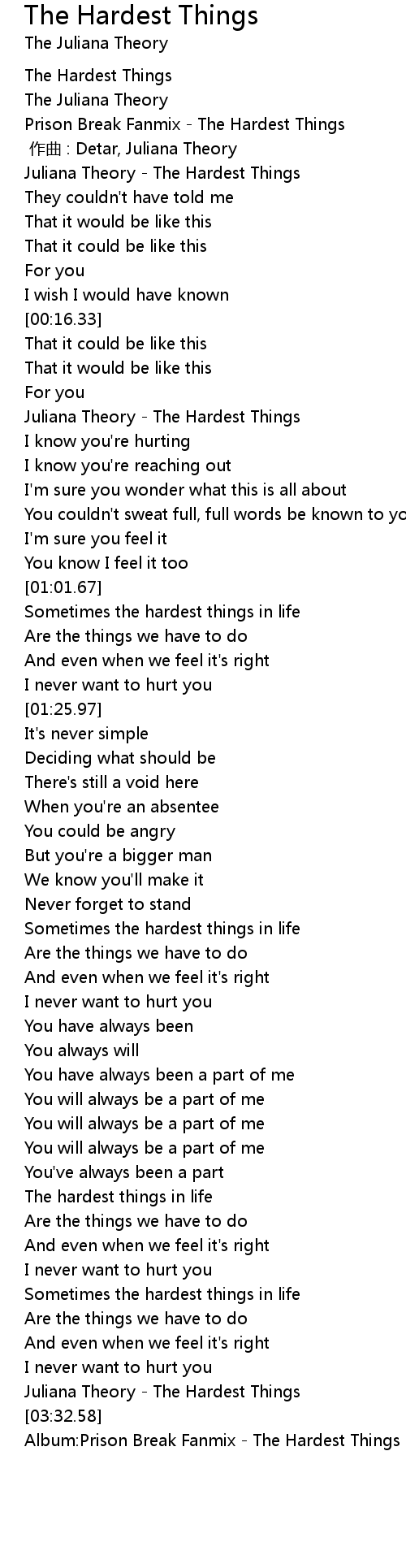 | [03:36.87] | Album: Prison Break Fanmix The Hardest Things |