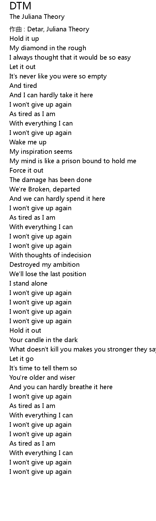 | I won' t give up again | |