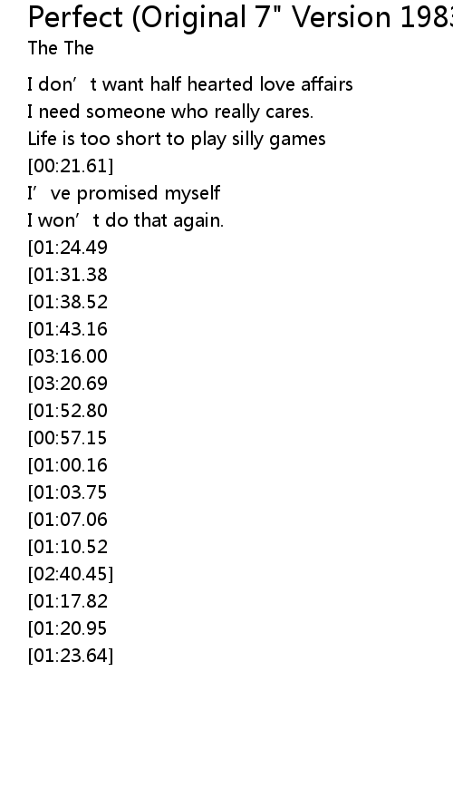 | [02:47.58][01:24.49][00:28.46] | It' s got to be perfect |