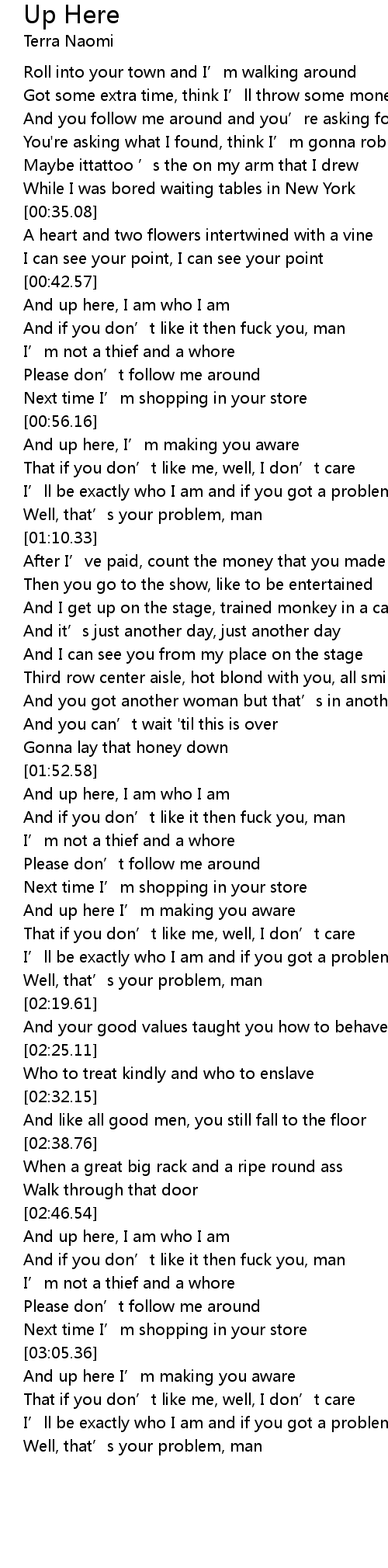 | [01:04.28] | I’ll be exactly who I am and if you got a problem with it |