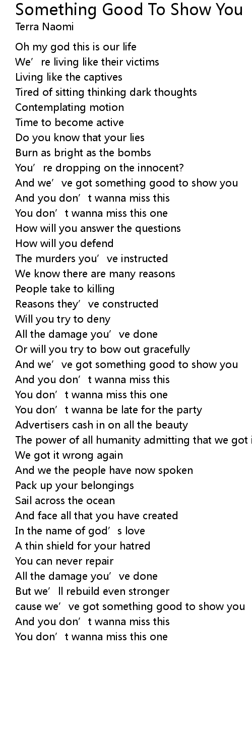 | cause we' ve got something good to show you | |