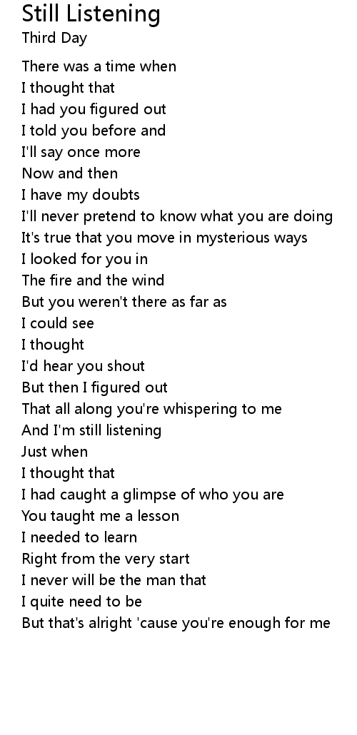 And I'm still listening |