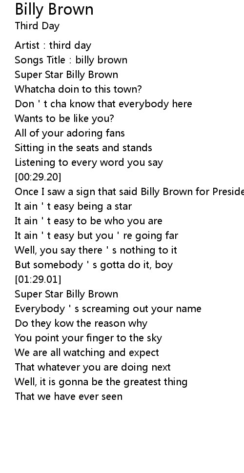| [00:37.32] | Once I saw a sign that said Billy Brown for President |