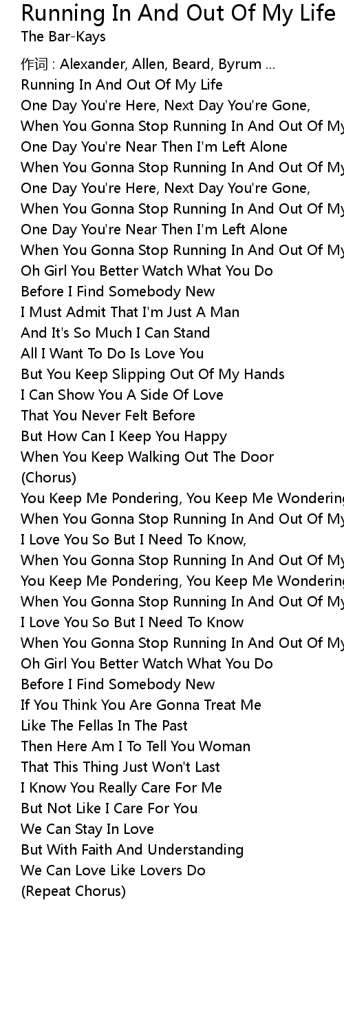 | When You Gonna Stop Running In And Out Of My Life, | |