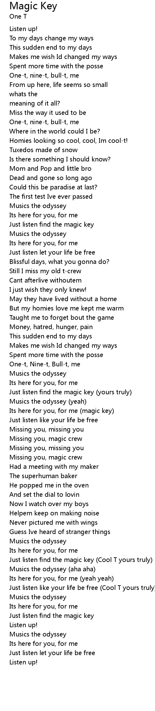 Just listen find the magic key (Cool T yours truly) |