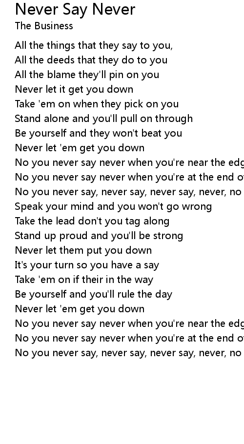 No you never say, never say, never say, never, no |