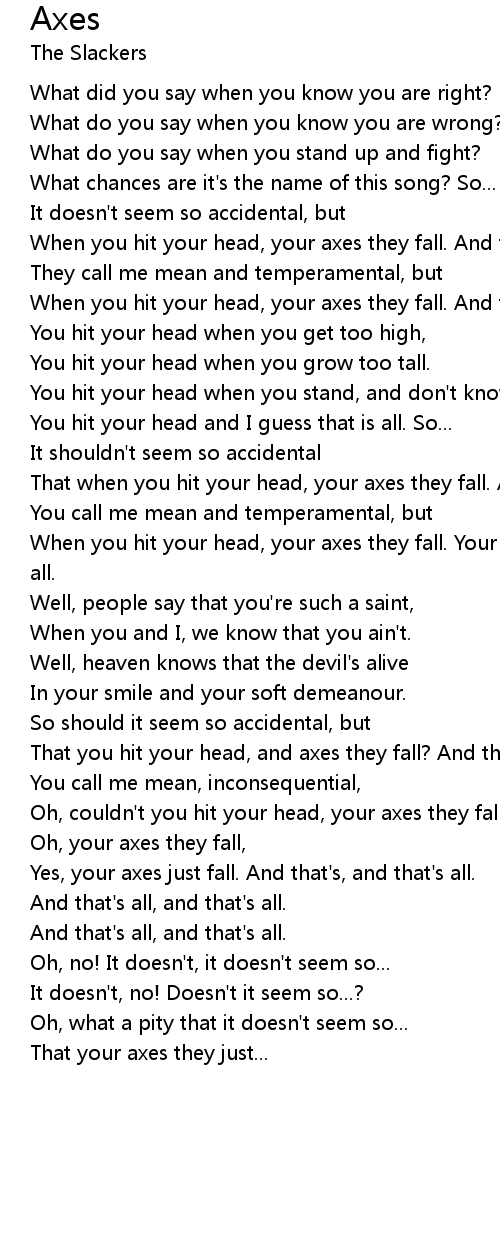 When you hit your head, your axes they fall. Your axes they fall, and that's all. |