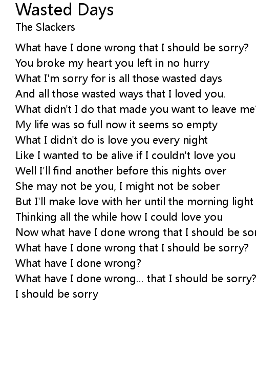 What I'm sorry for is all those wasted days |