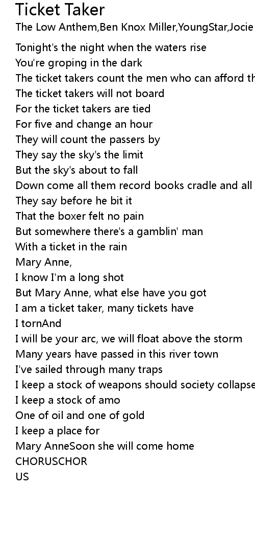 Ticket Taker 歌词