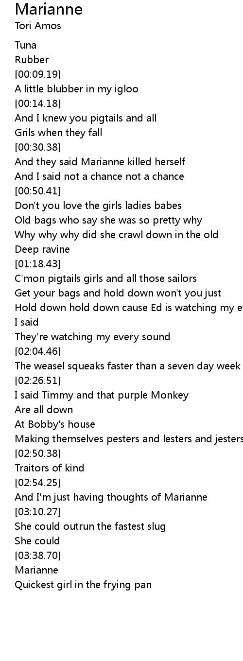 | [03:04.00] | And I'm just having thoughts of Marianne |