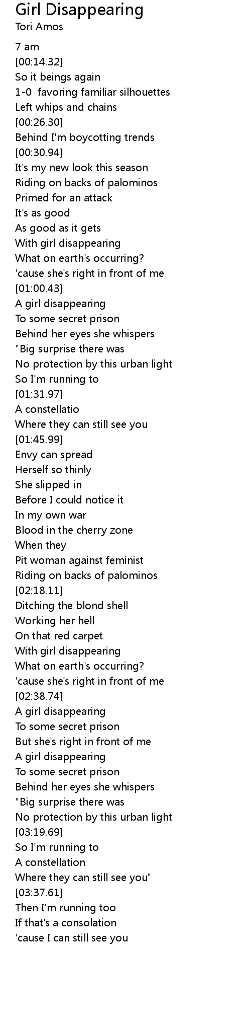 | [00:49.77] | With girl disappearing |