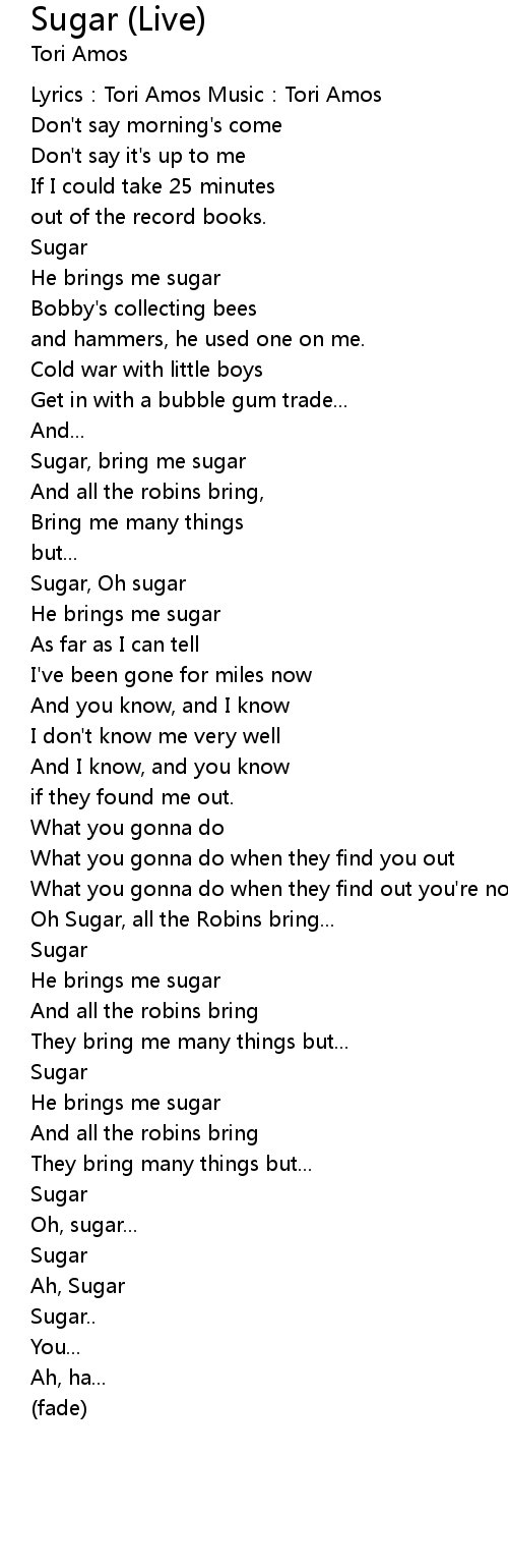 | What you gonna do when they find out you' re nothing but Sugar | |