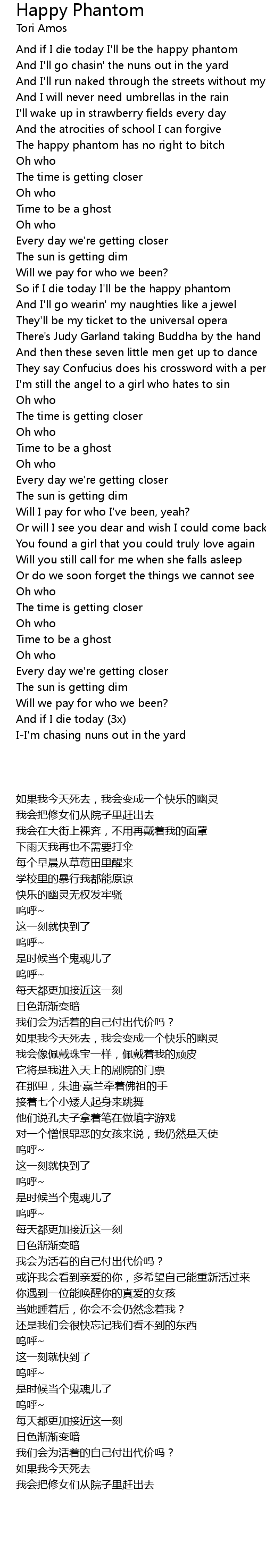 And if I die today I'll be the happy phantom |