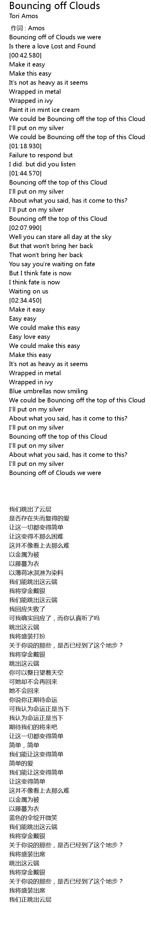 | [00:00.00] | 作词 : Amos |