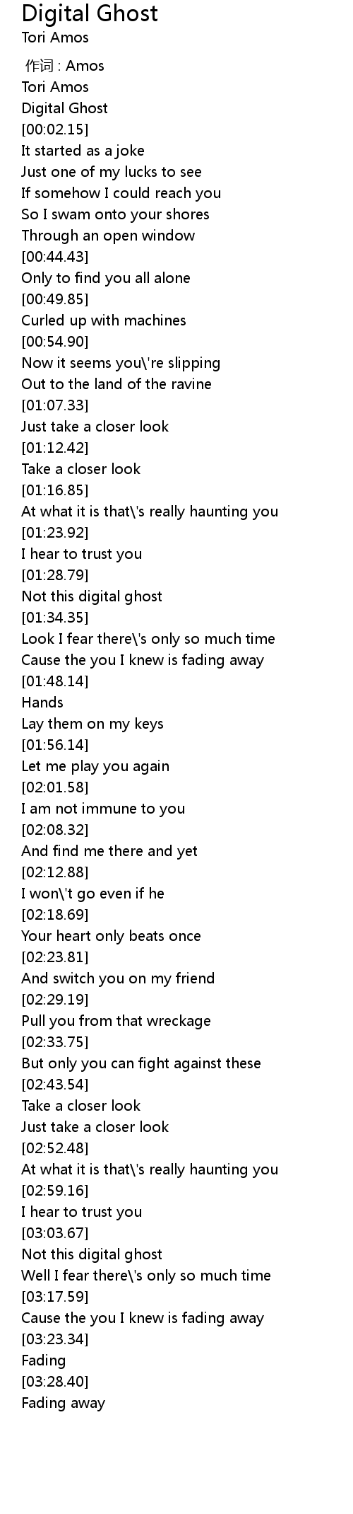 | [03:04.86] | Not this digital ghost |