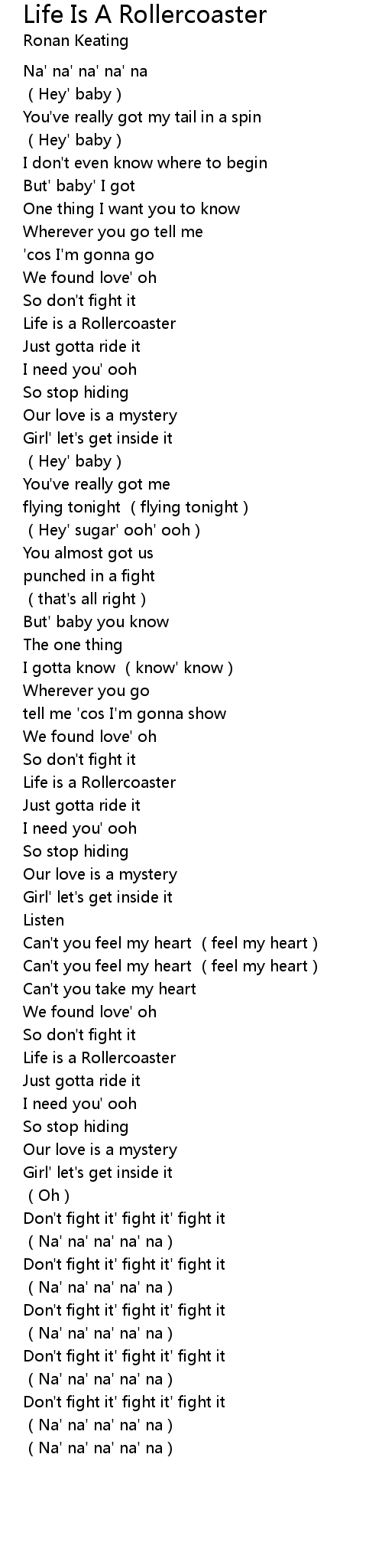 | 歌曲 | Life Is A Rollercoaster |