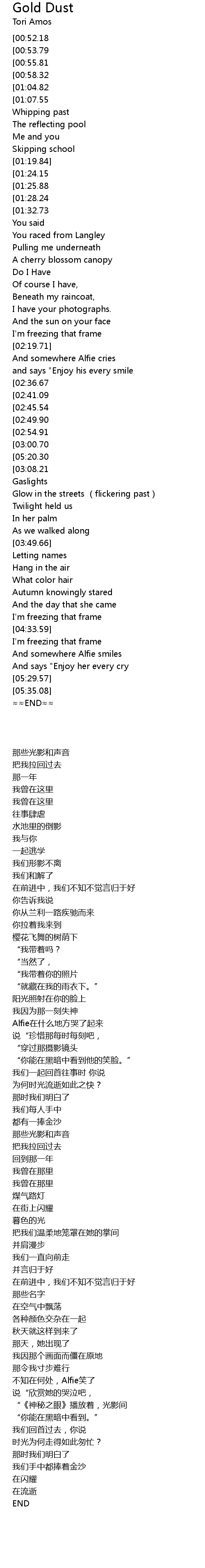 | [05:16.00][03:00.70] | We held gold dust |