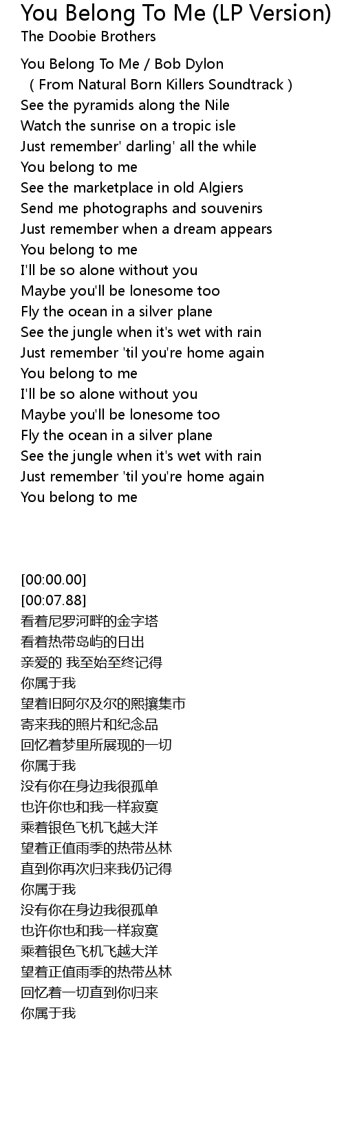 | [00:00.00] | You Belong To Me Bob Dylon |