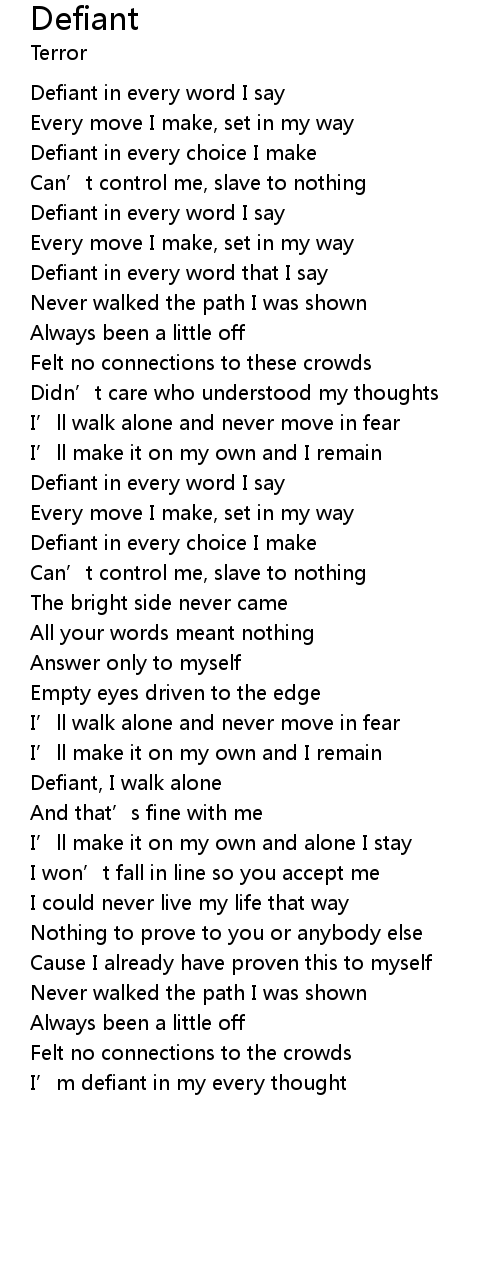 | I’m defiant in my every thought |