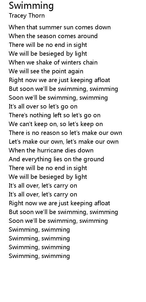 But soon we'll be swimming, swimming |