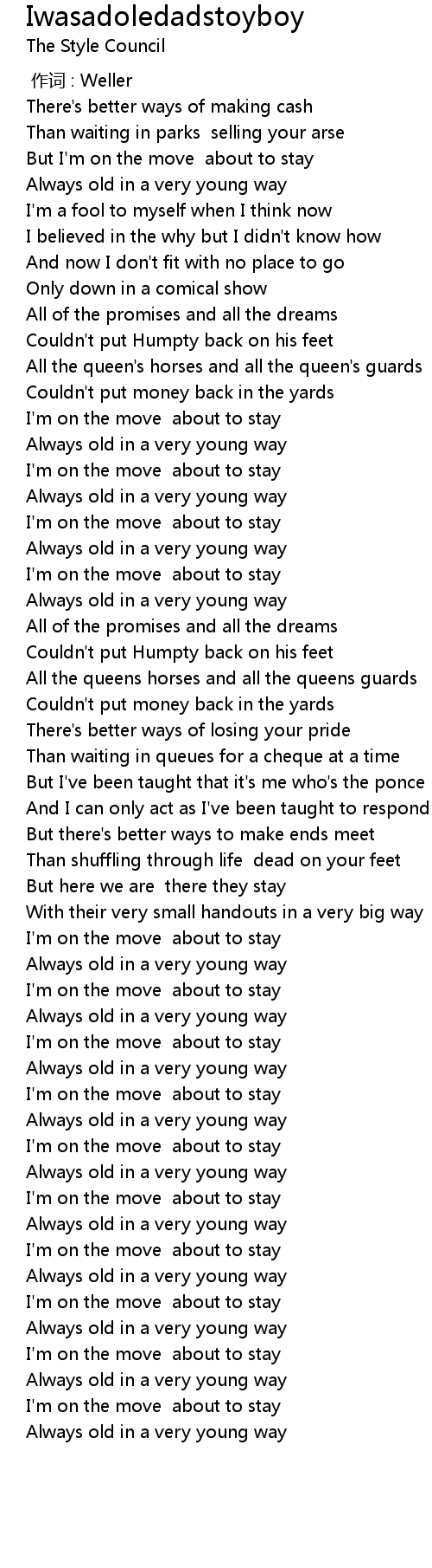 | [02:22.68] | Couldn't put Humpty back on his feet |