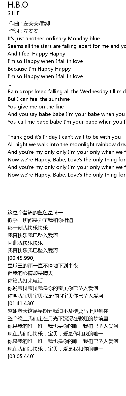 | [02:54.280] | 现在我们很快乐,宝贝,爱是我和你的唯一 |