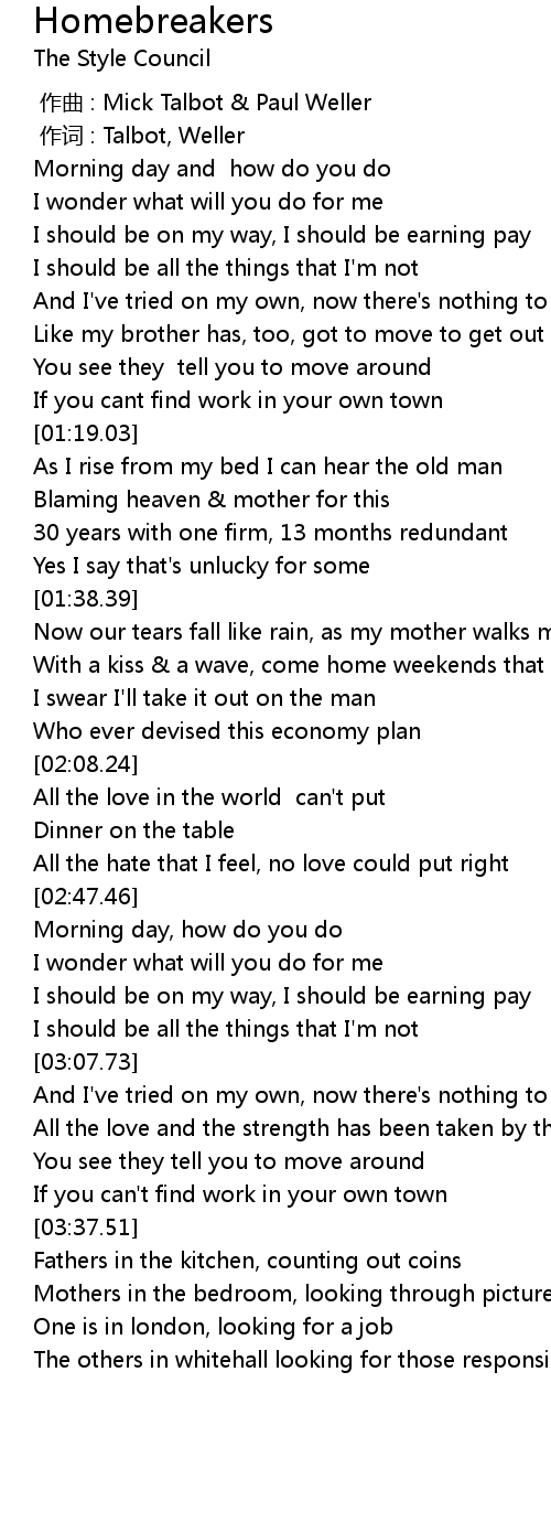 | [00:00.00] | 作曲 : Mick Talbot & Paul Weller |